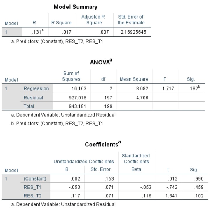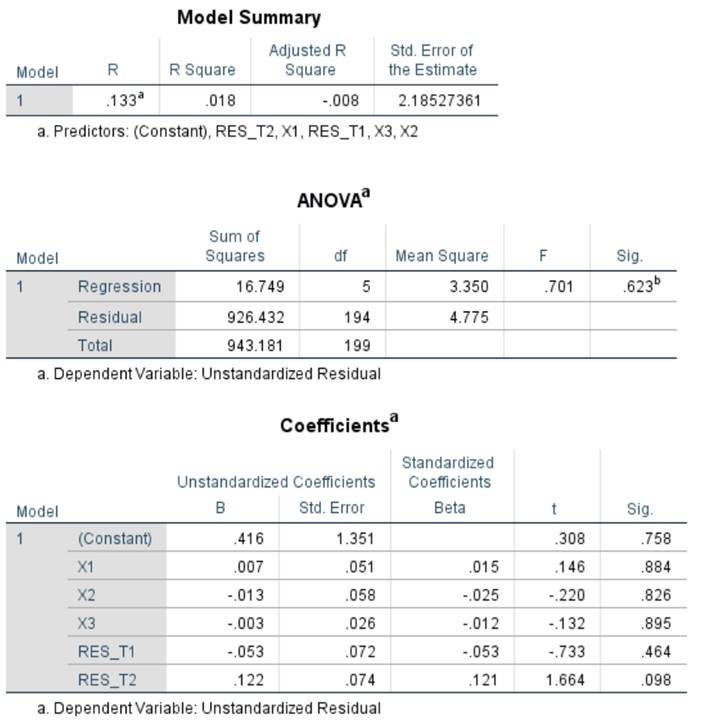 Teknik pengujian asumsi autokorelasi yang paling umum digunakan adalah Durbin Watson yang mana menguji hubungan antar series residual pada tingkat pertama (first order). Namun apabila hasil durbin watson tidak memberikan hasil yang memadai dalam pengambilan keputusan, maka peneliti bisa menggunakan teknik alternatif seperti Lagrange Multiplier Test atau Breusch-Godfrey Test.