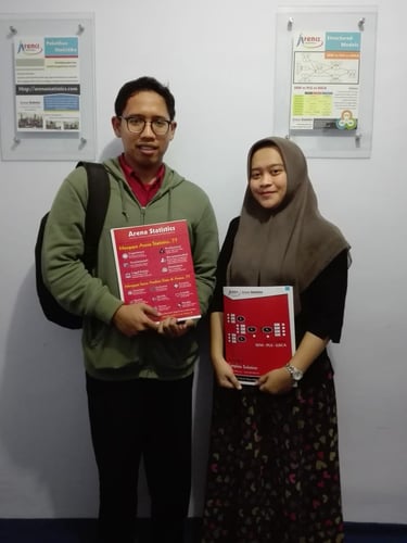 "Saya merasa terbantu sekali oleh Arena Statistics dikarenakan dosen pembimbing langsung percaya dengan hasilnya karena melihat penjelasan dari Arena Statistics yang sangat jelas, dan detail, Semangat terus kak untuk membantu teman - teman yang menyelesaikan tugas akhir."