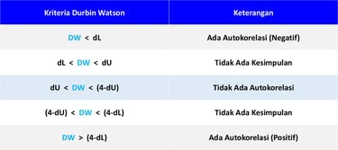 Kritera pengujian atau kriteria pengambilan keputusan yang menggunakan statistik uji Durbin Watson adalah sebagai berikut :