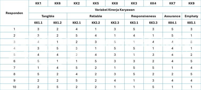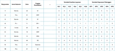 Kolom digunakan untuk variabel, dan/atau Dimensi, serta indikator / Item / Pertanyaan