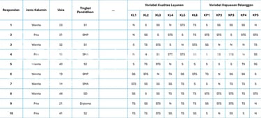 Misal: STS = Sangat Tidak Puas - SS = Sangat Puas)