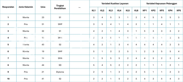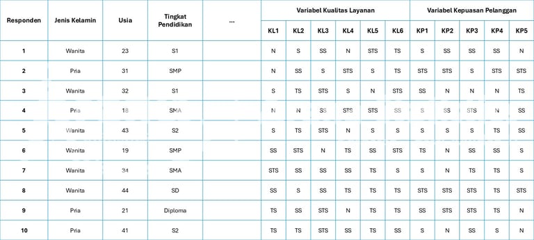 Prinsip Dasar Tabel Input Data Mentah Hasil Survey