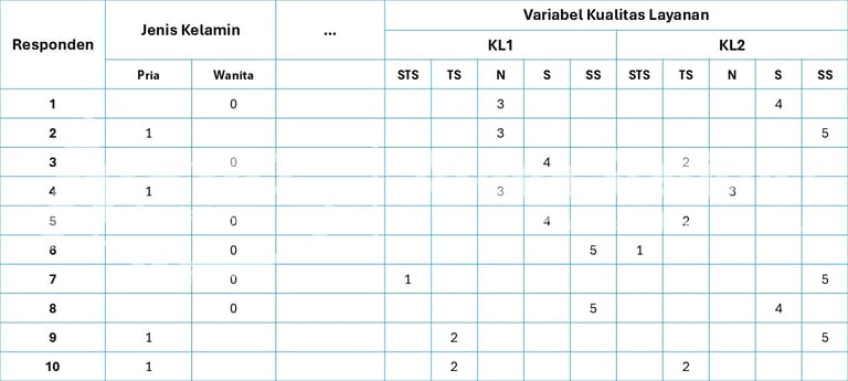 Kolom ganda untuk satu pertanyaan / Item / Indikator (misal: Jenis Kelamin pada kolom 1 untuk Pria dan pada Kolom 2 untuk Wanita)